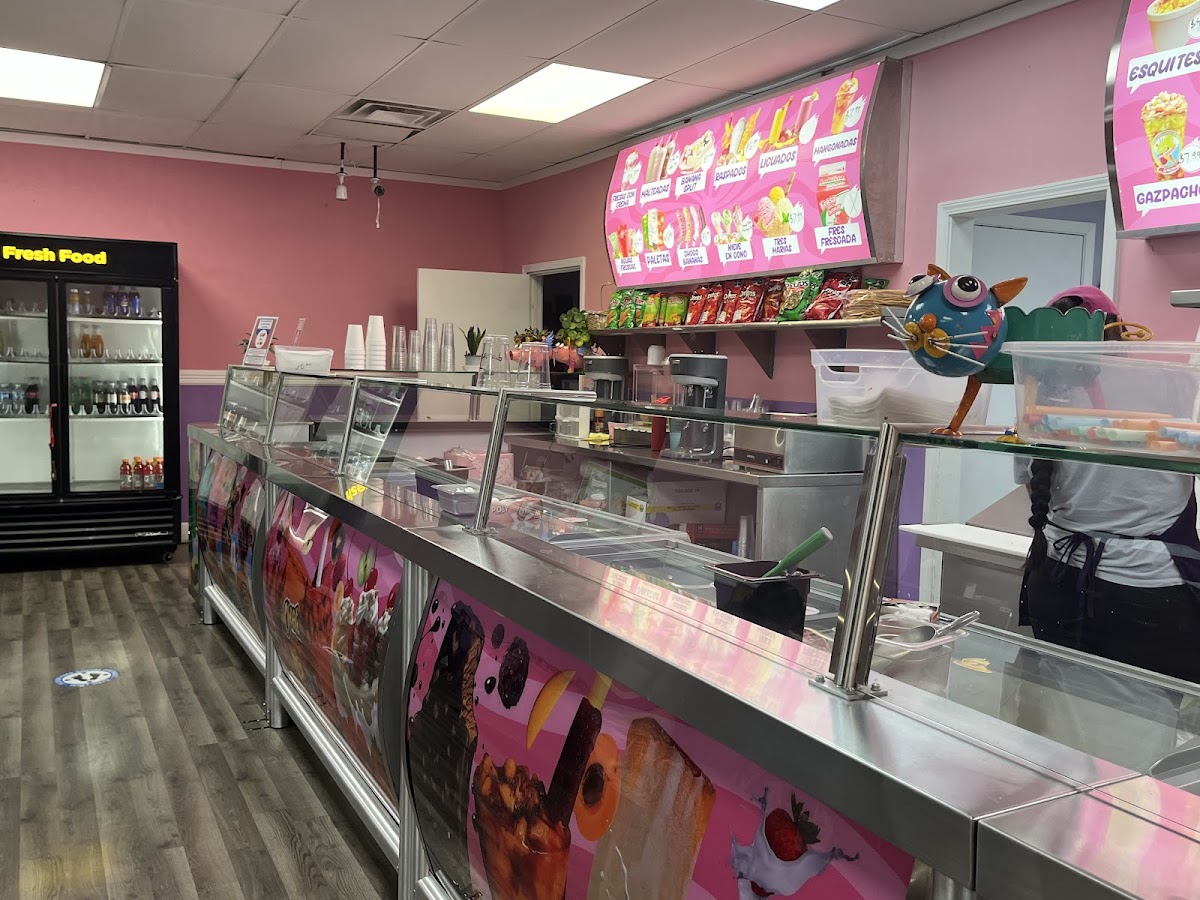 Good selection and variety of ice cream flavors and other snacks! I tried the fresas con crema and it is delicious! Next time I will try the elote. Que rico!!!